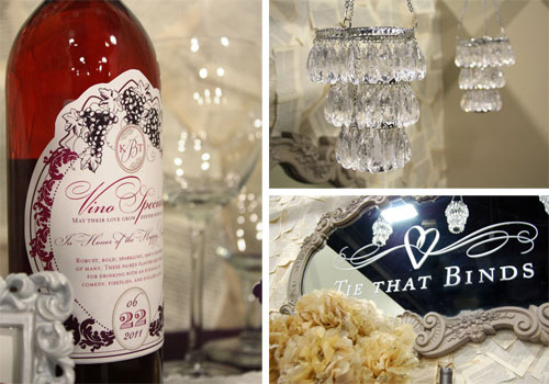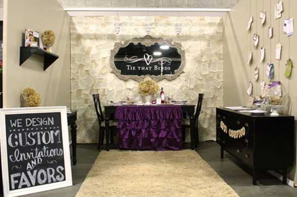 This bridal expo booth display (shown above) was a collaboration of Amada of Joy Ever After and Mekala of Tie That Binds. Joy brought her experience in set design and retail space and Mekala brought her biz savvy and customized wedding stationary and products into the display.