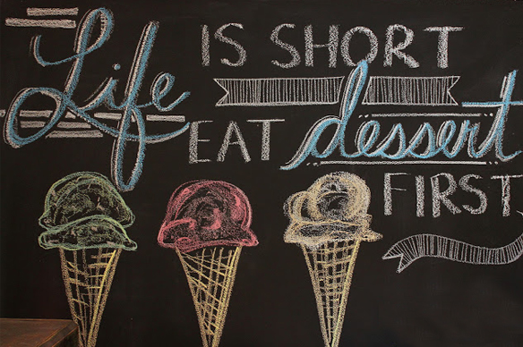 (3) Draw like the pro’s. I know what a number of you are thinking, “Heck, I can barely draw stick figures!” Here’s something that I learned in art school and is described step-by-step in this chalkboard drawing tutorial by Ella Claire. And if you want something even easier, use a projector to project your design onto the chalkboard to trace! Here’s a past BFF post showing how to use a projector in ‘DIY custom business signage on a dime.’