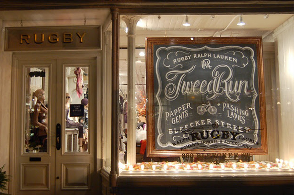 The Ralph Lauren window display (image featured above) takes up the entire window, but you could easily combine a framed chalkboard sign with a variety of store products that you want to feature.