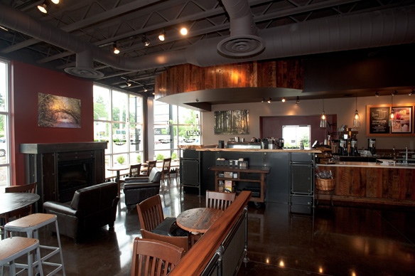 WHERE DID THE NAME COME FROM AS WELL AS, THE THEME/OVERALL IMAGE/BRAND? The name came from my daughter Natalie. After months of names and themes, it all came together with the name of The Woods Coffee. The NW is filled with trees, so the interiors feature trees and have a warm ski lodge feel, which is part of our brand image.