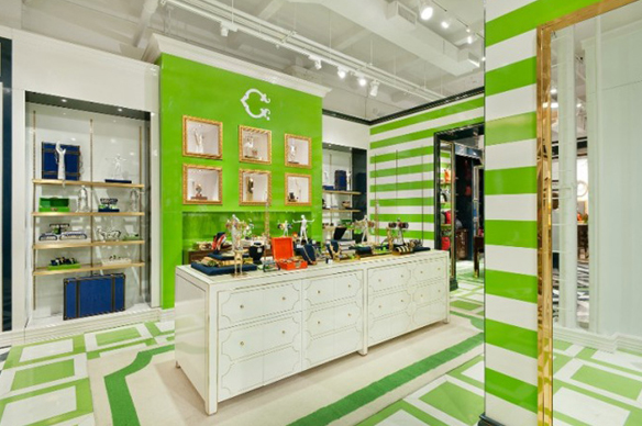 For example, in the entry, you might land in a Regency-style room dedicated to all things handbags; keep walking and you can land in an English townhouse or a Palm Springs cabana.  It’s uh-maaaazing – between the bright colors, patterns, and shiny accents, you’ll be transported into absolute wonder and delight.